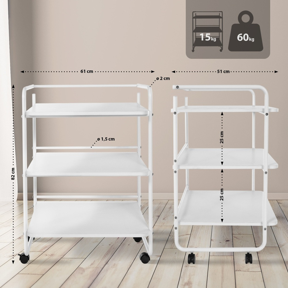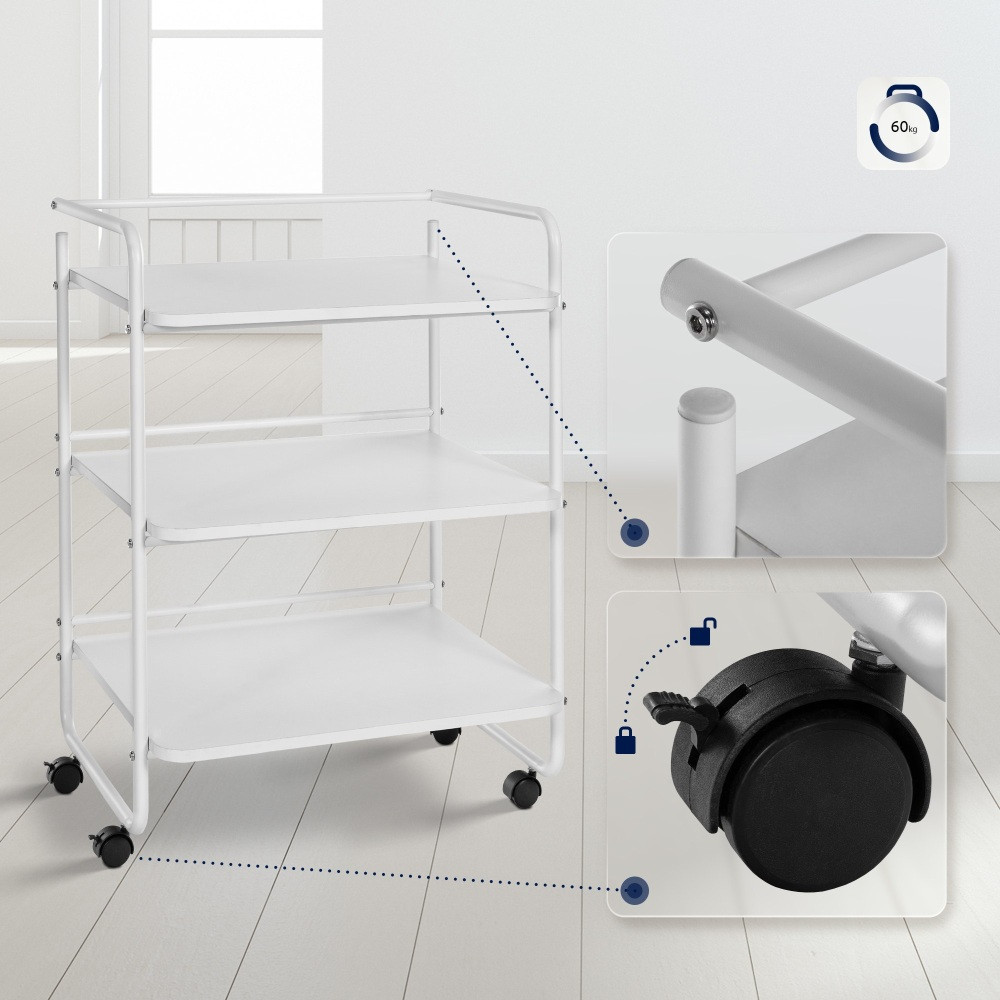 Optimal Opbevaring: De tre store hylder i robust MDF-træ giver dig masser af plads til dine produkter, instrumenter og håndklæder. Afstanden på 25 cm mellem hylderne gør det let at organisere både små og store genstande.