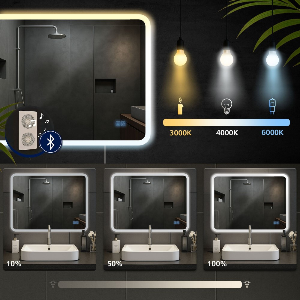 Spejlet fås også med indbygget Bluetooth-højttaler, så du kan nyde din yndlingsmusik, podcasts eller radioprogrammer, mens du gør dig klar.