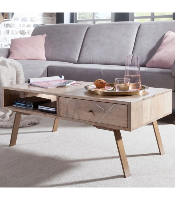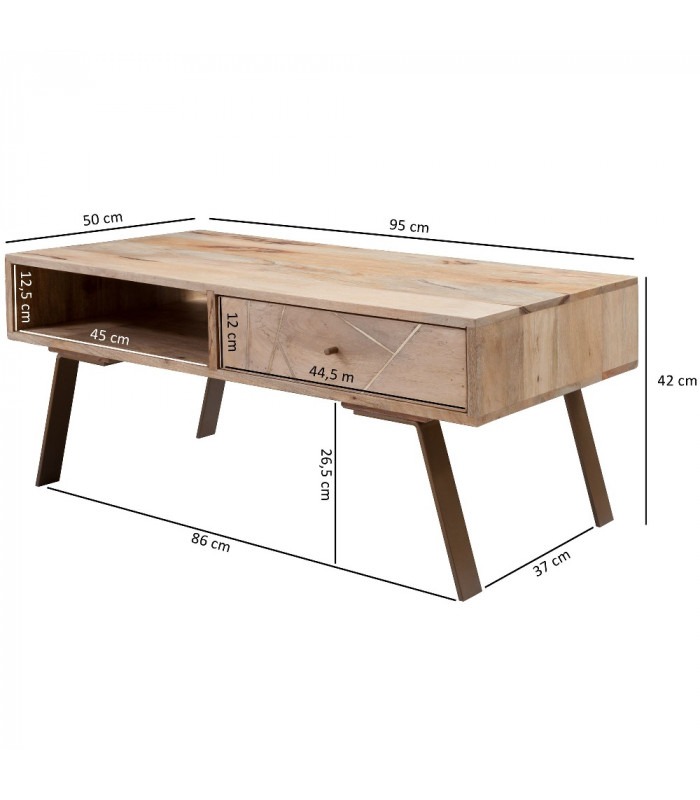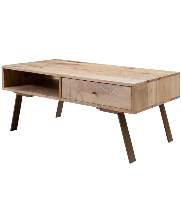 KARSI - Fantastisk sofabord lavet i en flot blanding af træ og metal. Hvert stykke af KARSI sofabord er håndlavet i ægte bæredygtig træ, hvilket giver den en helt særlig charme og unikhed, takket være træets egne korne og farvenuancer.