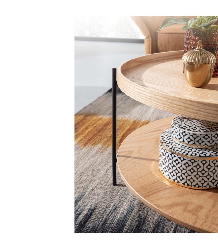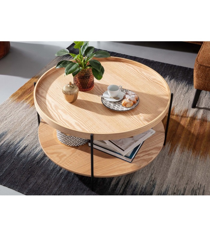 IRENE sofabord er et smukt sofabord der samtidig er simpelt og moderne. IRENE sofabord er lavet i MDF plader med ægte egetræ finer, med bevarede træårer, der gøre hvert IRENE sofabord unikt. Bordplade kanterne er lavet i tulipantræ, mens bene i runde pulverlakeret metalben. Med IRENE sofabord få du masse plads til opbevaring af alt hvad en stue behøver.