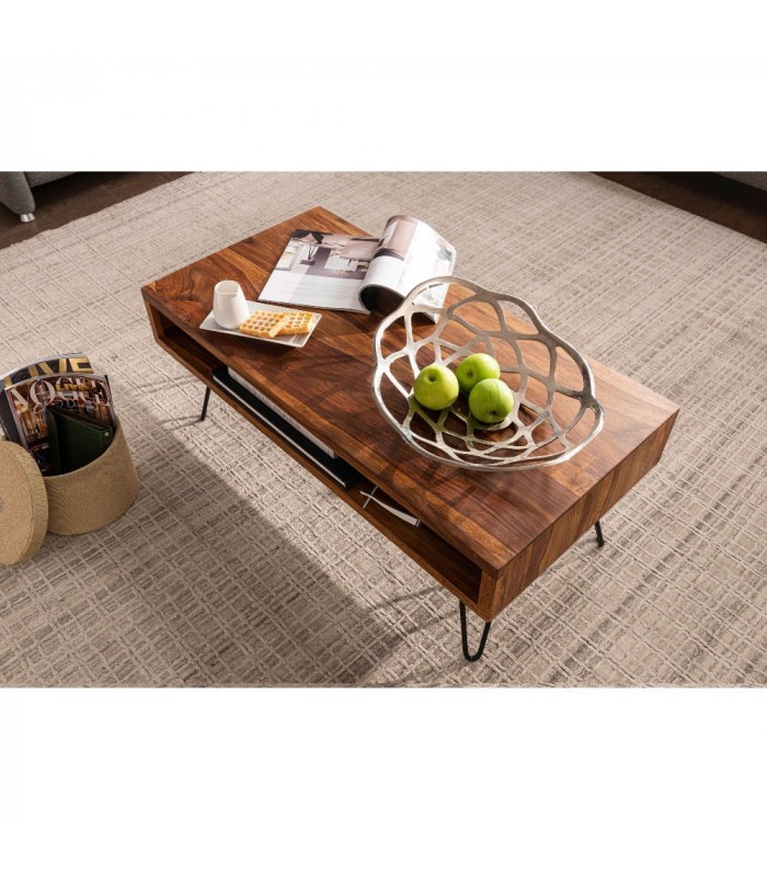 Med Nordy sofabord få du en elegant sofabord i den højeste kvalitet. Nordy er håndlavet i ægte FSC certificeret Sheesham træ, hvilket gøre at hvert eneste bord er unikt og udstråler sin egen originalitet og charme.