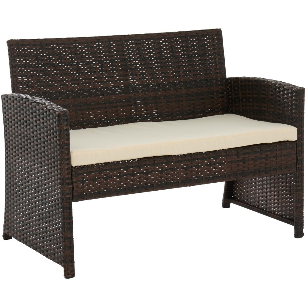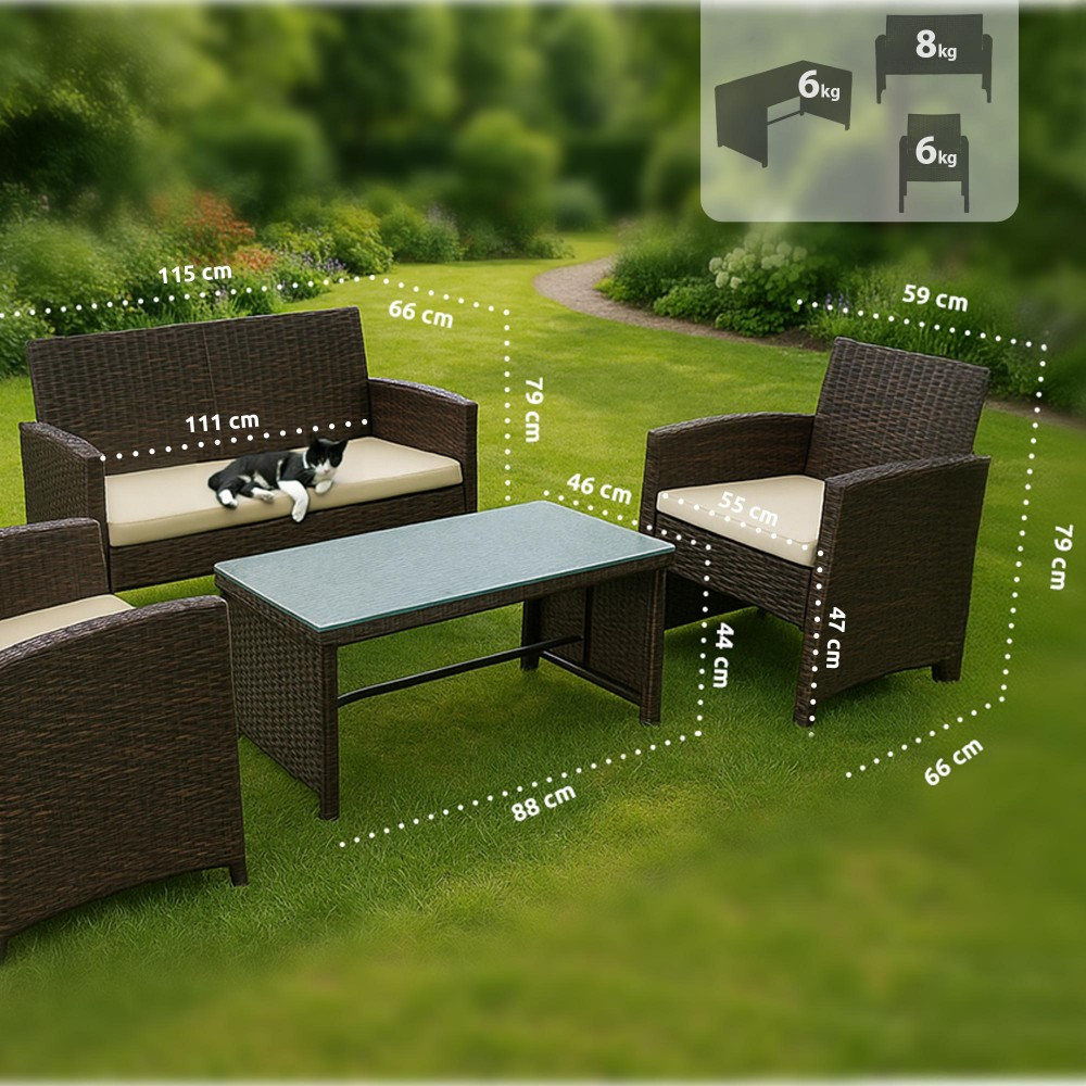 Komplet sæt til din komfort: Sættet inkluderer to komfortable lænestole, en to-personers sofa og et elegant havebord med glasplade. De medfølgende tykke siddehynder og ergonomiske ryglæn giver optimal siddekomfort.